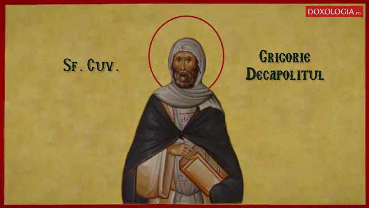CALENDAR ORTODOX 20 NOIEMBRIE. Sfantul Grigorie Decapolitul s-a nascut nascut in orasul Irinopolis din Decapolea Isauriei, in sud-estul Asiei Mici, in jurul anilor 780-790. Ajunge la o manastire din Decapole, la egumenul Simeon, un frate al mamei sale. Aici a ramas timp de 14 ani. Se va retrage intr-o pestera, unde va auzi o chemare de la Dumnezeu - care l-a indemnat sa paraseasca pestera ca sa poata fi de folos si altora. Petrece o iarna intr-o manastire din Efes, ajunge in orasul Proconez, apoi la Enos, in Macedonia. De aici va fi prezent in Tesalonic, unde este gazduit intr-o manastire de catre egumenul Marcu. Impreuna cu un calugar de aici, se indreapta spre Roma. Au mers pe uscat pana la Corint, in sudul Greciei. Se imbarca pe o corabie si ajunge la Roma. Avea o putere deosebita asupra demonilor. Multe persoane stapanite de duhuri necurate au fost vindecate in urma rugaciunilor cuviosului Grigorie.