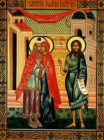 De asemenea, pentru ca intru toate Sfântul Ioan Botezatorul sa fie inaintemergatorul lui Hristos, cu sase luni inainte ca Arhanghelul Gavriil sa se arate Maicii Domnului, acesta din urma se arata Marelui Prooroc Zaharia, in momentul in care intra in templul Domnului ca sa tamiieze si sa se roage pentru popor.