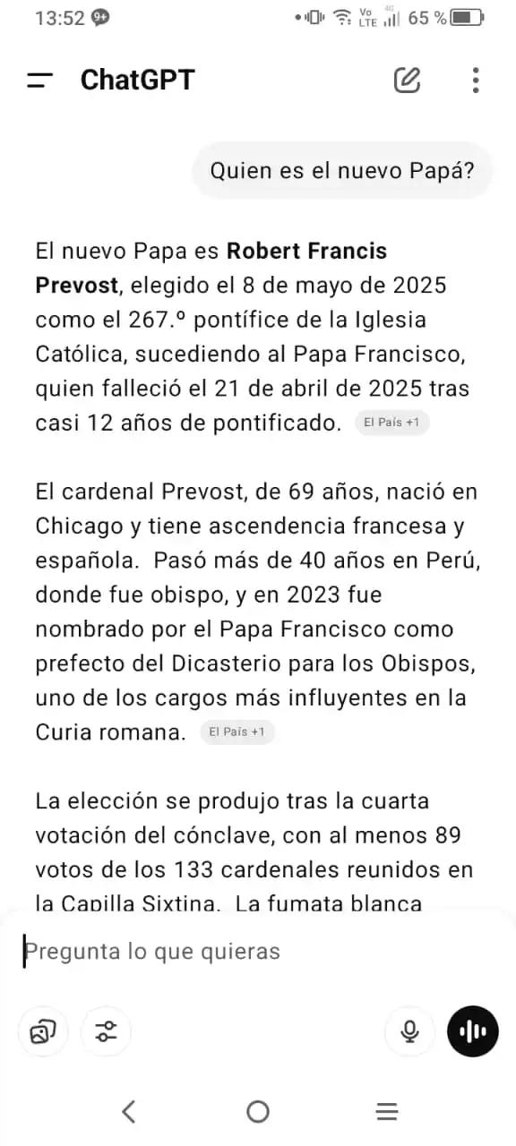 Ziarul El Sol din Mendoza, Argentina, a întrebat, de asemenea, ChatGPT, care „a dat asigurări că Prevost fusese deja ales noul lider al Bisericii” Catolice, potrivit site-ului web al instituţiei media, care a publicat o captură de ecran a răspunsului AI, cu câteva minute înainte de anunţ.