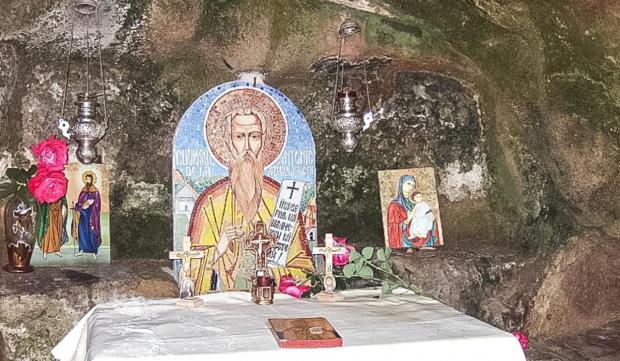 Nemulţumit că nu avea un loc anume rânduit pentru rugăciune, a început să sape alături un mic paraclis în stâncă, făcând din ea un lăcaş de închinare şi de preamărire a lui Dumnezeu.
