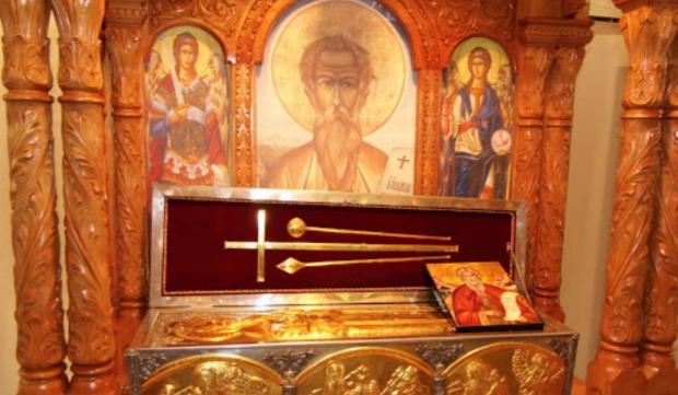 Osemintele Cuviosului au fost găsite îngropate la intrarea în peşteră şi au fost mutate la Schitul Iezer, unde au fost aşezate spre închinare.