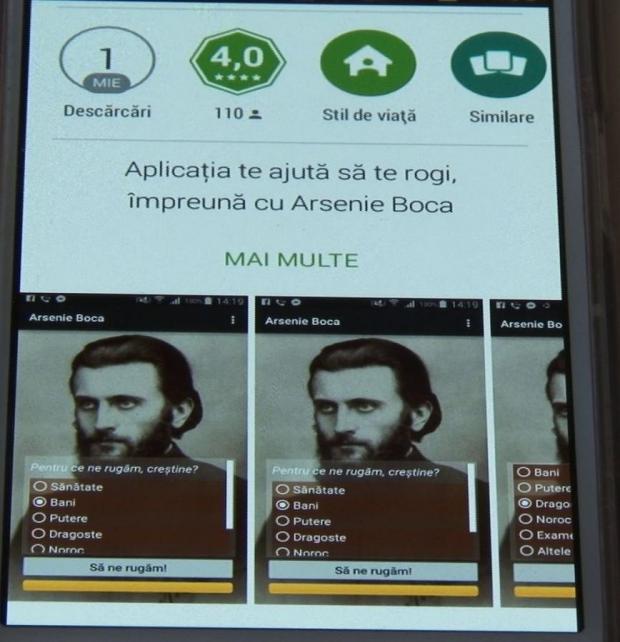 Aplicația poartă chiar numele preotului, Arsenie Boca, și poate fi descărcată pe aproape toate telefoanele inteligente. Odată instalată, ea îți permite să te rogi alături de cel supranumit "Sfântul Ardealului" pentru bani, sănătate, dragoste sau noroc. Credincioșii au rămas fără cuvinte când au auzit de o asemenea năzdrăvănie.
