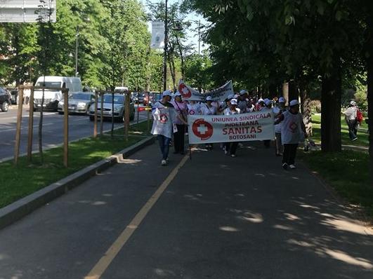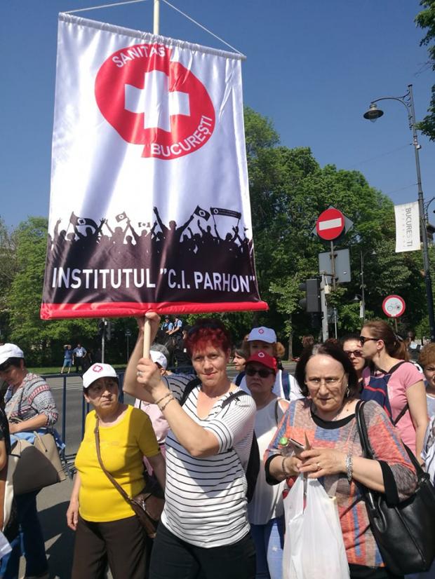 În Piaţa Victoriei din Capitală au protestat aproximativ 10.000 de sindicalişti din Sănătate cu bannere pe care au afișat mesaje precum "Dacă nu ne măriţi sporul, hai să mirosiţi formolul", "Egalitate pentru toţi", "Dreptate pentru TESA" şi "Legea voastră unitară dezbină întreaga ţară".