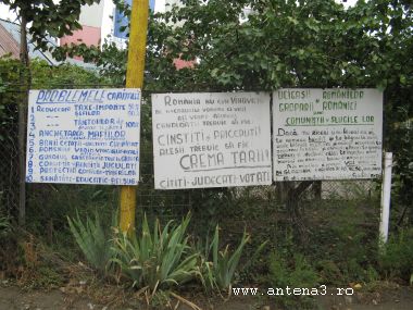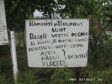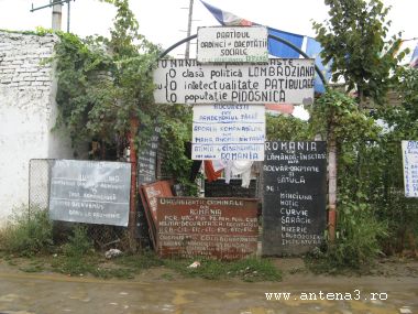 O serie de afişe atrage atenţia pentru că este aranjată în forma unei cruci, în partea superioară fiind scris numele unui partid: "Partidul Ordinei şi Dreptăţii Sociale". În opinia excentricului personaj, care şi-a tapetat casa cu astfel de mesaje, "România nu poate renaşte cu o clasă politică lombroziană, o intelectualitate patibulară şi o populaţie pidosnică".