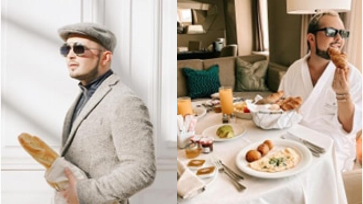 Cosmin distribuie celor 100.000 de urmăritori ai săi fotografii cu mesele sale elegante ce conțin în mod obișnuit caviar și mic-dejunuri cu trufe și șampanie.
