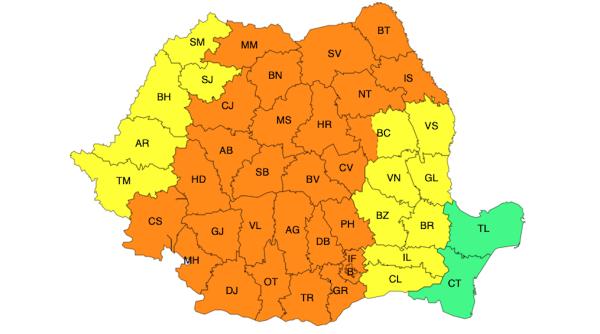 Vremea instabila va continua cel puţin până astazi, avertizează meteorologii. Noile coduri galbene și portocalii de vijelii, averse torențiale, descărcări electrice și grindină acoperă cea mai mare parte din țară, cu excepția litoralului.