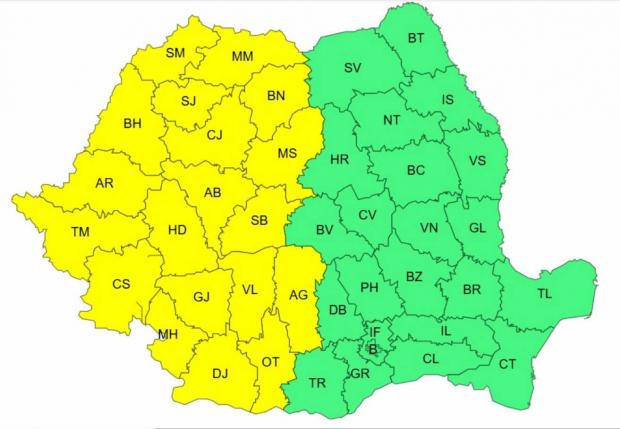 Oficialii din cadrul Administraţiei Naţionale de Meteorologie (ANM) au anunţat miercuri că mai bine de jumătate din România va fi sub cod galben de ploi, vijelii, grindină şi descărcări electrice. Potrivit specialiştilor, avertizările nowcasting vor intra în vigoare începând cu ora prânzului, mai exact ora 12:00 şi sunt valabile până diseară, la ora 23:00