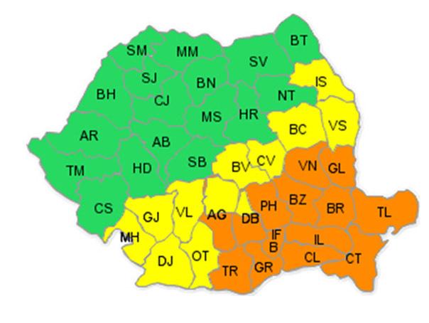 Avertizarea cod portocaliu a fost emisă pentru Bucureşti şi judeţele Ilfov, Giurgiu, Prahova, Teleorman, Călăraşi, Ialomiţa, Constanţa, Tulcea, Brăila, Buzău, Vrancea, Galaţi şi jumătatea de sud a judeţelor Argeş şi Dâmboviţa.