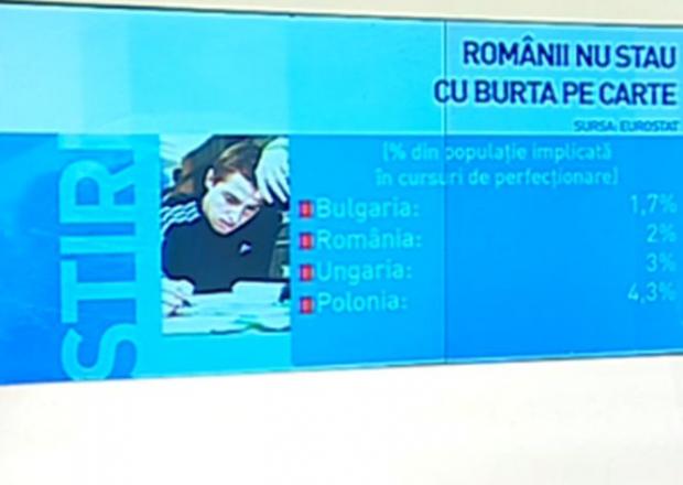 Potrivit datelor Eurostat, ne situăm pe al doilea loc din coadă în privinţa ponderii locuitorilor care învaţă pe tot parcursul vieţii fiind devansaţi doar de Bulgaria. Ungaria are cu un procent mai mult iar Polonia, dublu decât România.
