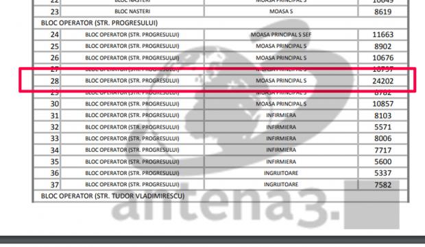 Cel mai mare salariu de moaşă, cel de 24.202 lei este mai mare chiar şi decât al directorului spitalului, dar şi decât al medicilor şefi de secţii, cu zeci de ani de experienţă.