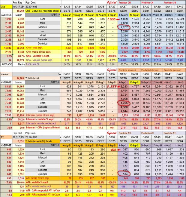 Epidemiologul folosește un tabel de predicție conform căruia evoluția valului 4 se apropie tot mai mult de scenariul său cel mai pesimist: un vârf în jurul a 8.500 de cazuri pe zi la mijlocul lunii octombrie.