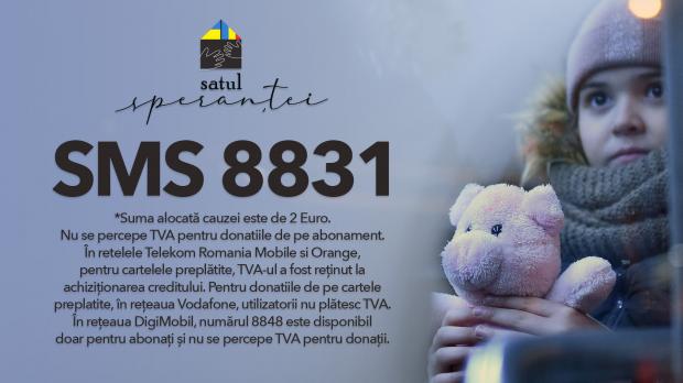 Cel mai simplu, însă, puteți dona câte 2 euro la numărul special 8831*, printr-un sms cu textul "Satul Speranței".