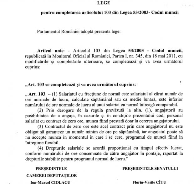 Mai mulți senatori PSD, Azamfirei Leonard, Ion Rotaru și Alfred-Laurențiu-Antonio Mihai, au inițiat un proiect prin care ar putea introduce în Codul Muncii un nou tip de contract de muncă, numit „contractul de zero ore”.