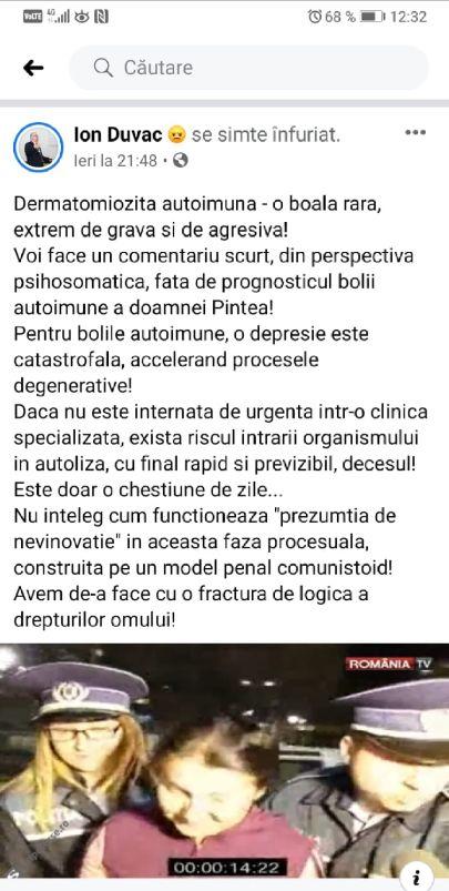 Soţul lui Pintea, Ovidiu Goga, prezintă, de asemenea, conversaţii cu medicii care cunosc cel mai bine starea fostului ministru al Sănătăţii.