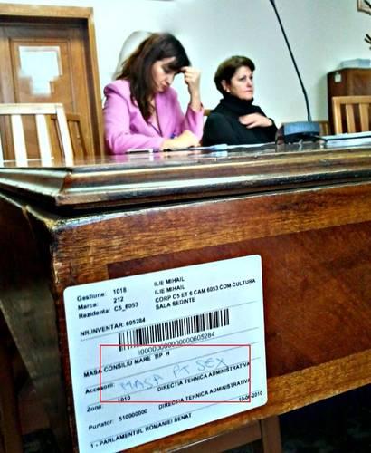 Nu e una propriu-zisă dar cel putin aşa poartă numele. Cineva şi-a permis să facă o glumă mai deocheată şi să mâzgălescă cu pixul pe una dintre mesele care compun mobilierul încăperii unde se ţin şedintele.