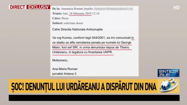 Ana Maria Roman a prezentat, luni, la Sinteza zilei, informații-bombă despre dosarul penal care îl viza pe fostul șef al SRI George Maior, dosar care ar fi dispărut din DNA.