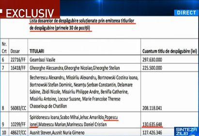 Potrivit unui raport al Curţii de Conturi, fostul ministru Ionuţ Popescu apare în topul beneficiarilor retrocedărilor frauduloase, pe poziţia a noua, cu un cuantum al titlului de despăgubire de 130.635.648 de lei