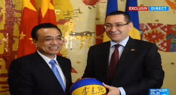 Ponta a povestit că a primit de la premierul Li Keqiang o minge de baschet cu autograf, după ce acesta a văzut în biroul său mingea de baschet şi tricoul lui Ghiţă Mureşan.