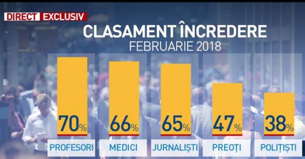 Încrederea în judecători este mai mare, 61% răspund „nu”, 36% susțin că au încredere, iar 3% nu au știut să răspundă.