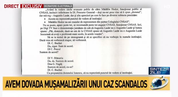Mihai Gâdea a prezentat, miercuri, la "Sinteza zilei", în premieră națională, o stenogramă-bombă din interiorul Consiliului Național pentru Studierea Arhivelor Securității (CNSAS).