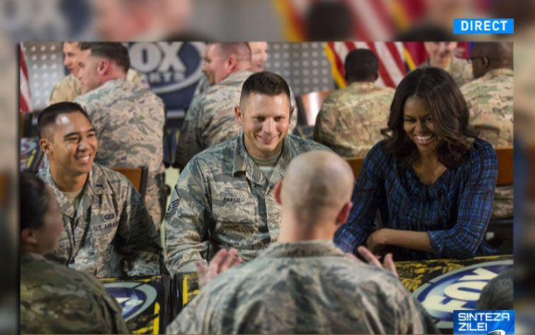 Una dintre ele a fost făcută la baza aeriana al-Udeid, din apropiere de Doha, în Qatar, folosita pentru operațiunile armatei americane împotriva jihadiștilor în Siria și Irak, acolo unde Prima Doamna a Statelor Unite ale Americii, Michelle Obama, a stat la masă cu militarii.