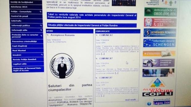 „Salutări din partea ciumpalacilor. Vă salutăm Domnilor. Noi suntem Legiunea. Noi suntem POPORUL ROMÂN sau desigur ciumpalacii. România, TREZEȘTE-TE!”, acesta este mesajul lăsat de hackeri pe site-ul Poliției Române.