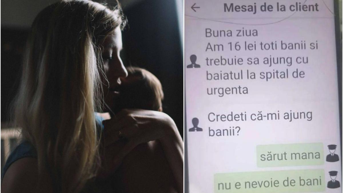 "Bună ziua. Am 16 lei toți banii și trebuie să ajung cu băiatul la spital de urgență. Credeți că-mi ajung banii?", întreabă femeia.
