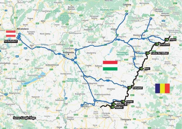 Hartă cu itinerariul spre punctele de frontieră deschise la graniţa româno-ungară