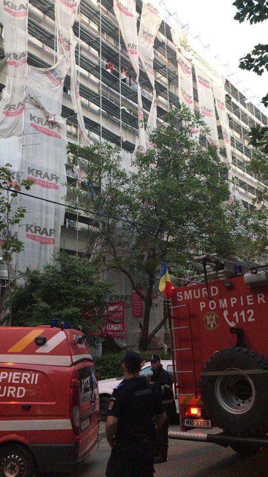 Potrivit acestora, incendiul s-a manifestat cu fum dens pe casa scării, iar unii locatari au ieşit din apartamente pe schela montată pe faţada blocului.