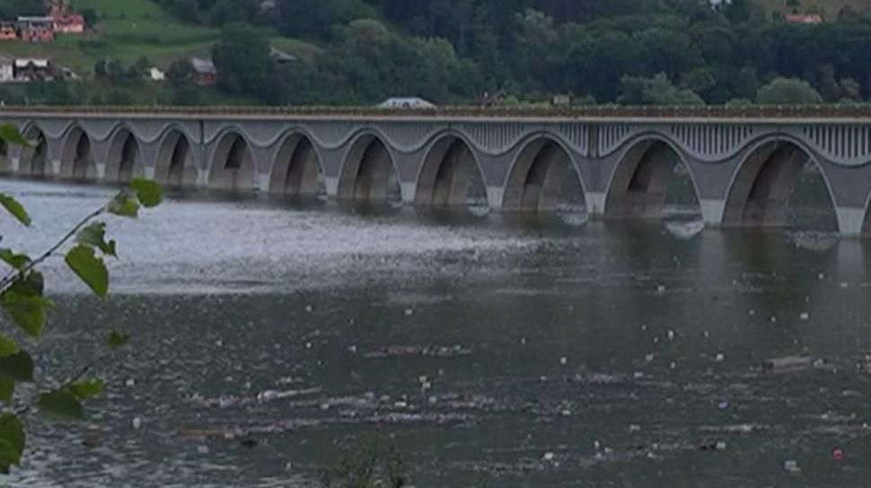 Dezastru ecologic în Bicaz. Lacul de acumulare Izvorul Muntelui, care atrage mii de turişti, a fost acoperit de tone de gunoaie după viitură.