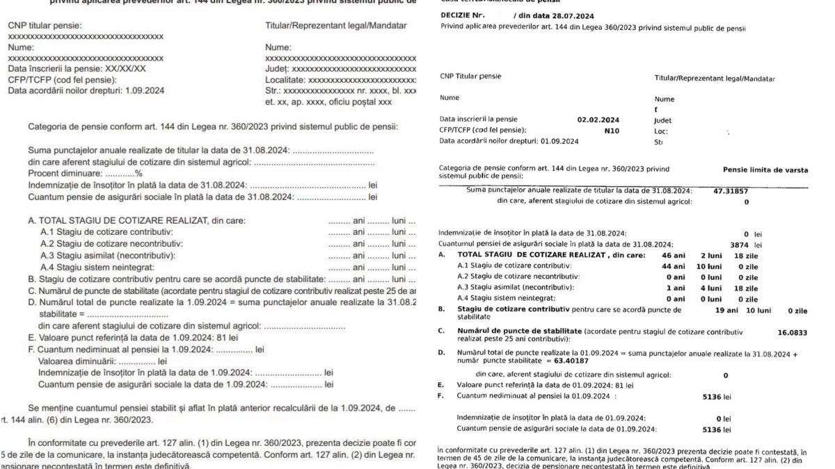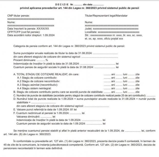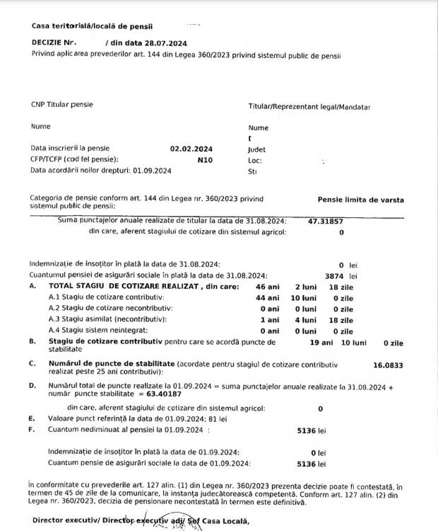 „În partea superioară a deciziei, avem informații cu privire la datele personale ale pensionarilor.