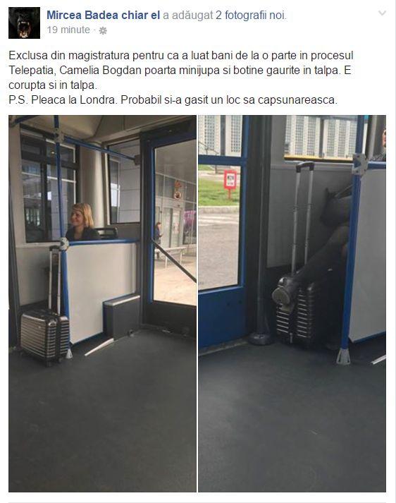 Mircea Badea a postat vineri, pe pagina de Facebook, două fotografii în care a fost surprinsă Camelia Bogdan și spune că judecătoarea din dosarul Telepatia pleacă spre Londra.