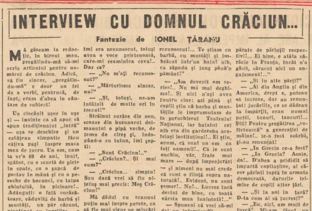 În aceeași ediție a României libere, e publicată o „fantezie”, sub forma unui interviu imaginar cu „domnul Crăciun”. Crăciun e nemulțumit că, în Occident, în special în Anglia și America e pus să cumpere jucării ciudate: puști, tunuri și tancuri.