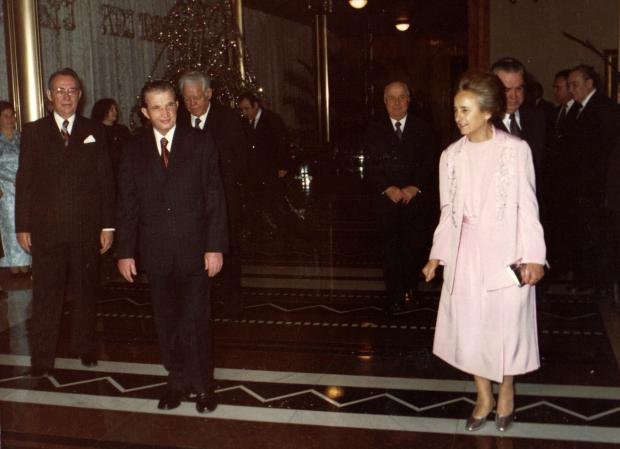 Nicolae și Elena Ceaușescu la petrecerea de Revelion din 1976. Sursa foto: Fototeca online a comunismului românesc, cotele 14 și 15