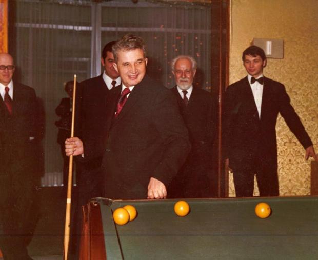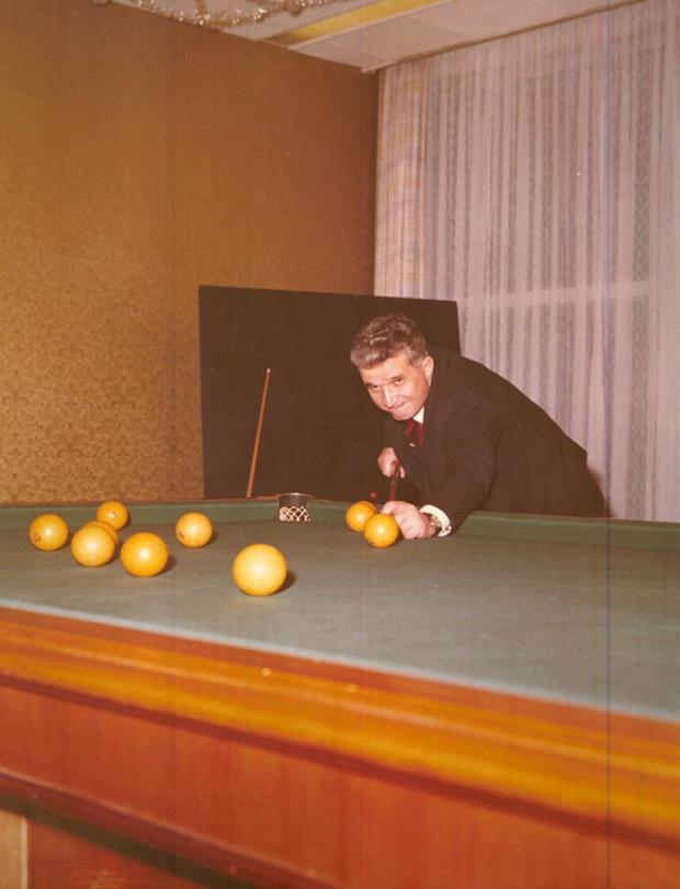 Nicolae Ceaușescu joacă biliard la Revelionul din 1976. Sursa foto: Fototeca online a comunismului românesc. cota 014