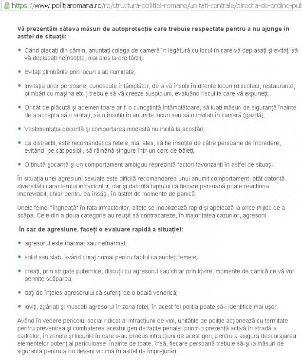 Recomandările Poliţiei vin după amploarea pe care a luat-o cazul violului de la Vaslui. Şapte tineri cu vârste cuprinse între 18 şi 27 de ani, din Vaslui, au sechestrat şi violat, în noiembrie 2014, o elevă de 18 ani, care ulterior a avut nevoie de îngrijiri medicale. Potrivit anchetatorilor, adolescenta a fost abuzată sexual în două rânduri, în aceeaşi seară, de cei şapte tineri.