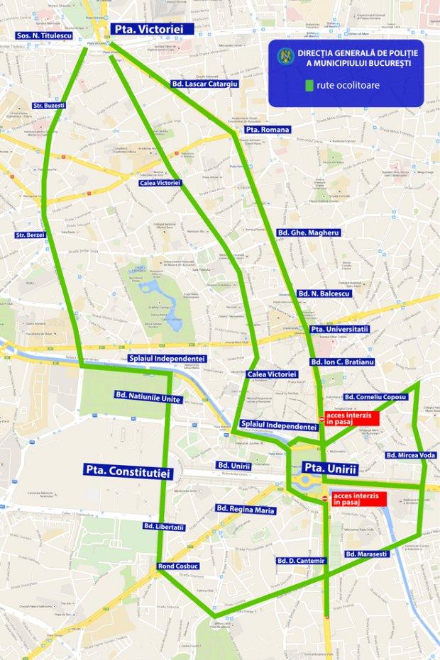 - Calea Victoriei - Spl. Independenței - Piața Unirii - Bd. Dimitrie Cantemir;