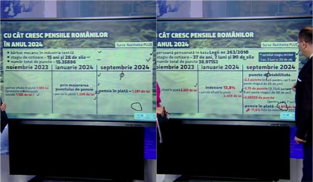 „Am tinut neaparat sa luam exemple de pensii mici pentru ca vreau sa arat diferenta intre o pensie cu un stagiu mic de cotizare in cazul acesta. 15 ani. Si o pensie tot cam acelasi cuatum dar cu un stagiu mai mare de cotizare. Se vede foarte clar ca pentru cei 15 ani si 28 de zile faptul ca in momentul asta este la nivelul indemnizatiei sociale. Dupa majorarea de la 1 ianuarie ajunge la 1258 de lei dar ramane tot in indemnizatia sociala pentru ca aici nu mai exista puncte de stabilitate pentru ca stagiul de cotizare este sub 25 de ani. Aceasta persoana va ramane la nivelul indemnizatiei sociale de 1281 de lei ”, a spus Daniel Baciu, conform realitatea.net.