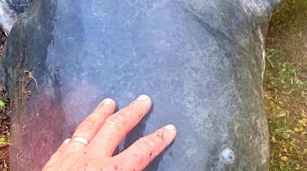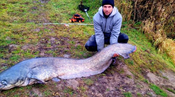 "Monstru" de 70 kg! Somn uriaş, lung de 2 metri, prins de un pescar din Satu Mare
