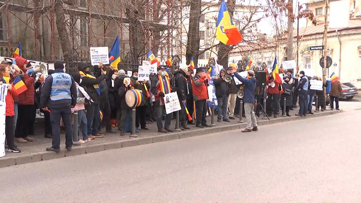 Manifestanţii spun că sunt nemulţumiţi pentru că ieri a început campania de vaccinare anti-COVID a copiilor din grupa de vârstă 5-11 ani.