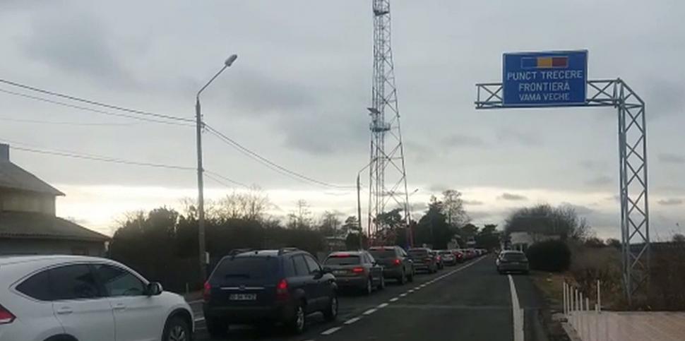 Aglomerație la punctul de trecere a frontierei spre Bulgaria. Românii care vor să petreacă Revelionul la vecinii bulgari așteaptă câteva zeci de minute în vamă.