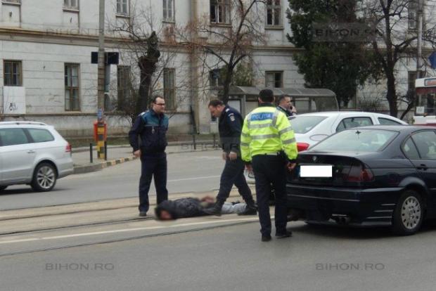 Cineva sunase la 112 şi anunţase acest eveniment. Scenariu stas, acţiune operativă şi fermă a poliţiştilor, chiar ca în filme: poliţiştii au pornit în urmărirea şoferului şi l-au prins, în faţa Magazinului Crişul. Ulterior, poliţiştii au aflat că omul nu a fost aruncat din vehicul, ba mai mult, e cunoscut de-al şoferului. Pasagerul ar fi fost în stare de ebrietate şi s-ar fi simţit rău, moment în care şoferul l-ar fi poftit afară să nu vomite în maşina lui.