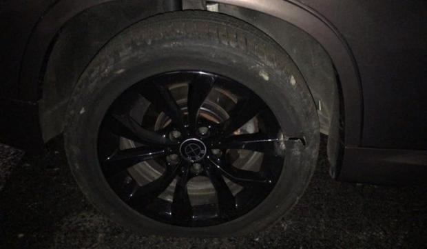 Astfel, şoferul a fost nevoie să apeleze la serviciile unei vulcanizări mobile pentru a-şi repara maşina, din cauza faptului că şi janta maşinii a fost avariată.