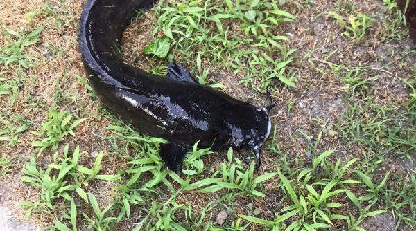 ”E clar că nu este peşte de-al nostru. Merge pe uscat cu aripile din faţă. Cineva sigur l-a scăpat dintr-o crescătorie. În ultimele zile, am prins mai multe exemplare”, a afirmat Eduard German, pescar în Delta Dunării.