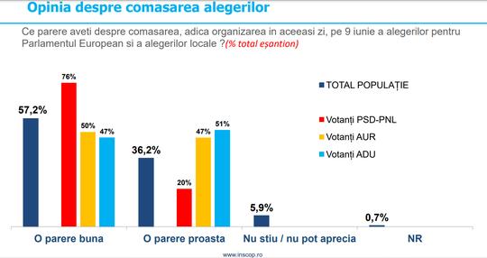 Respondenții au fost întrebați și ce părere au despre decizia PNL şi PSD ca la alegerile europarlamentare să candideze pe liste comune, iar la alegerile locale sa candideze separat.