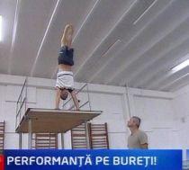 O ladă ţine loc de trambulină şi o saltea ţine locul apei. Insuficient pentru a exersa toate săriturile practicate la competiţiile internaţionale.