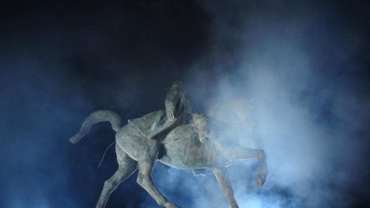 Muncitorii care lucrau la amplasarea statuii au văzut textele scrise pe soclu. Pe partea frontală a soclului era scris, cu vopsea rosie, "Cinste lui", iar pe o altă latură un mesaj pentru primarul Capitalei, căruia i se cerea demisia pentru că lucrările la Stadionul Naţional nu au fost finalizate.