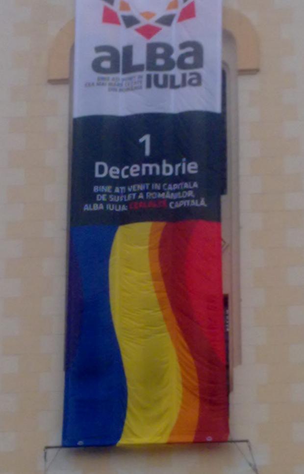 Mesh-ul a fost arborat pe clopotniţa Catedrala Reîntregirii şi conţine noul logo al municipiului Alba Iulia - o imagine stilizată a Cetăţii Vauban din municipiu, însoţită de mesajul: "1 Decembrie - Bine aţi venit în capitala de suflet a românilor, Alba Iulia: cealaltă capitală".