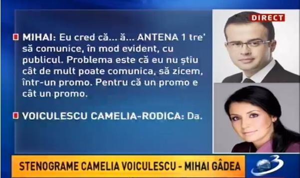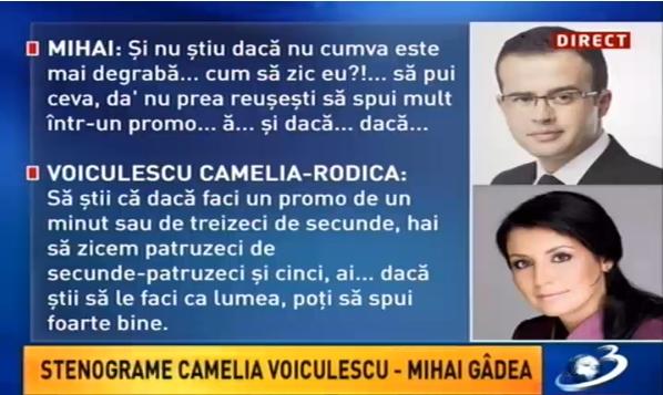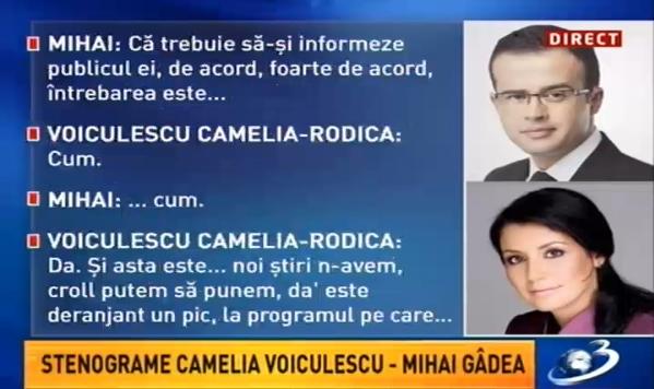 Iată, mai jos, convorbirea dintre Mihai Gâdea şi Camelia Voiculescu: