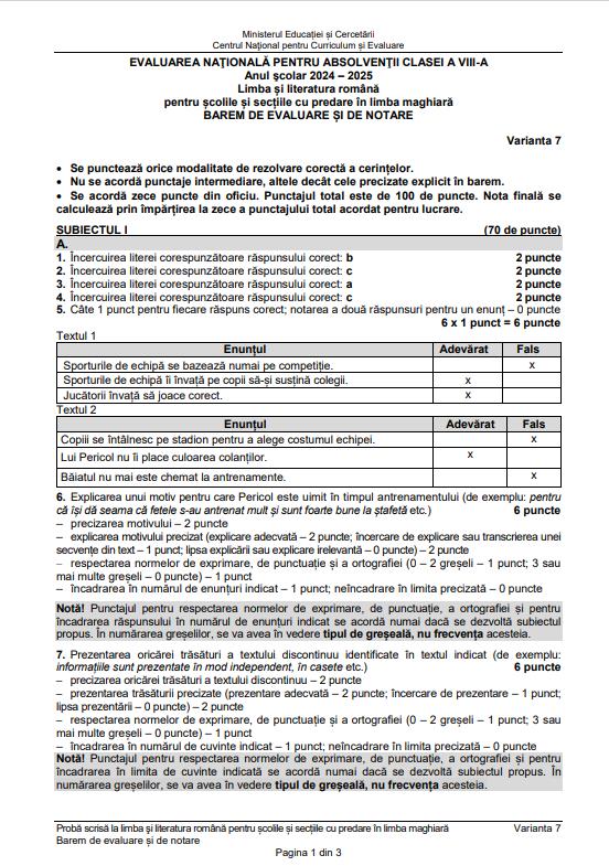 Elevii care au absolvit clasa a VIII-a au susținut azi prima probă de la Evaluarea Națională 2025, cea de Limba și literatura română. Subiectele integrale și baremul au fost publicate pe pagina special destinată de pe edu.ro.